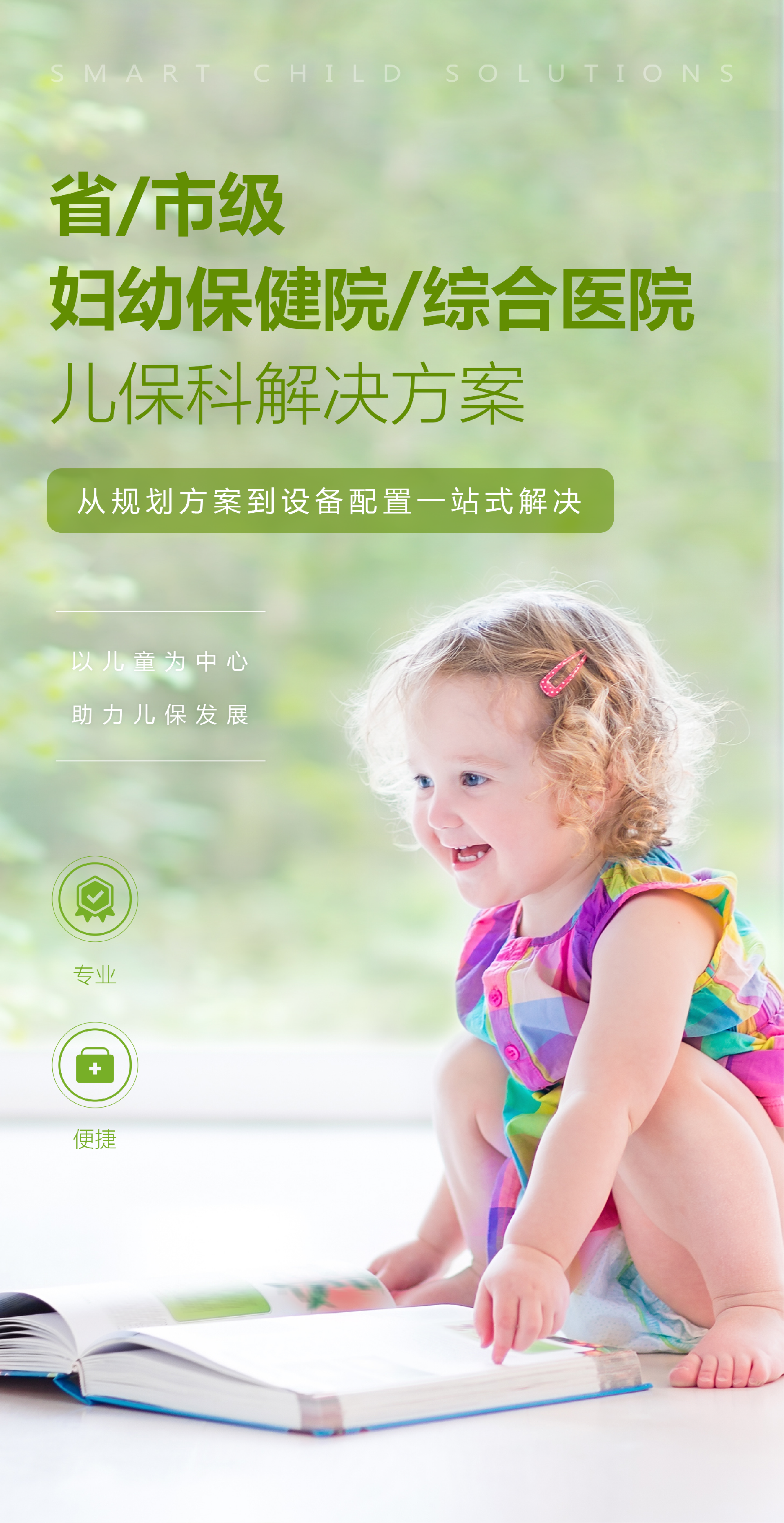 智慧兒保解決方案,提供兒保信息化管理新模式,以兒童為中心,為兒童健康提供全面的專業服務,實現新生兒篩查、定期體檢、專業評測(個體化專家指導方案)、專案管理、干預訓練、康復治療、區域督導、五官及群體保健的流程優化。具有專業性強、容易操作等特點,適用于不同層級的醫療保健機構。